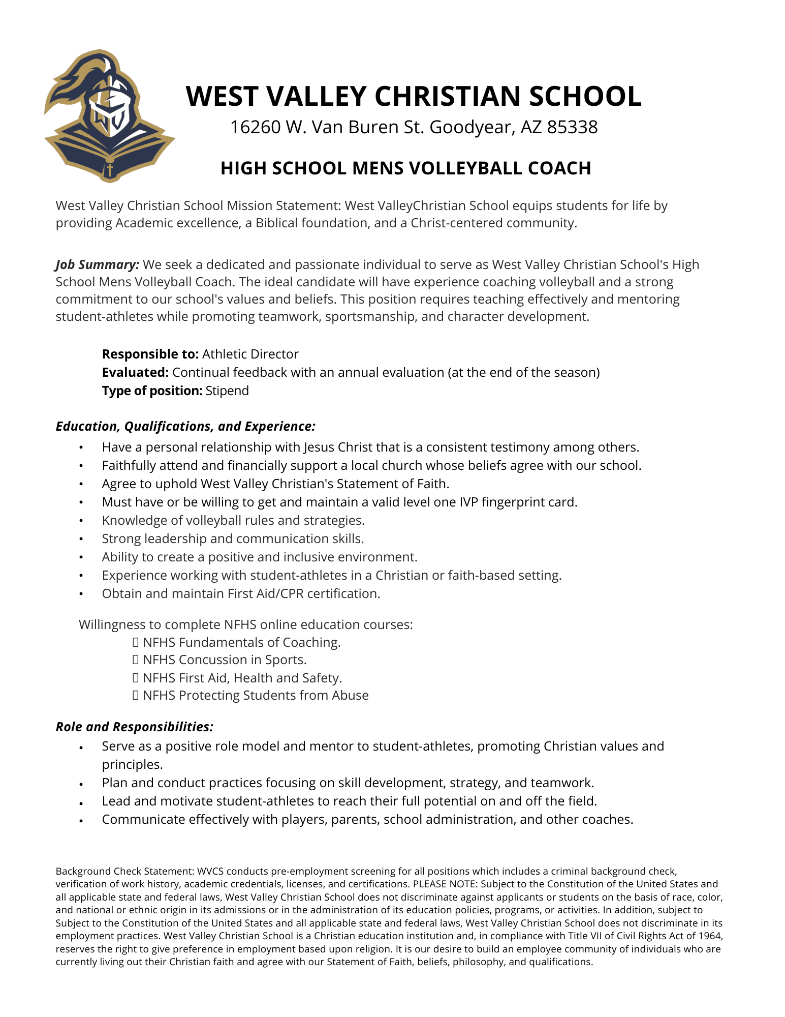 West Valley Christian seeks to equip students for life by providing academic excellence and a Biblical foundation in a Christ-centered community. Our faculty and staff lead those efforts to partner with our families and educate students in the light of God’s truths. To bring our mission to life, we seek employees who are committed to our values and mission. If you are seeking a fulfilling career where you can impact the next generation for Christ and be part of a growing community, we invite you to explore current opportunities below.